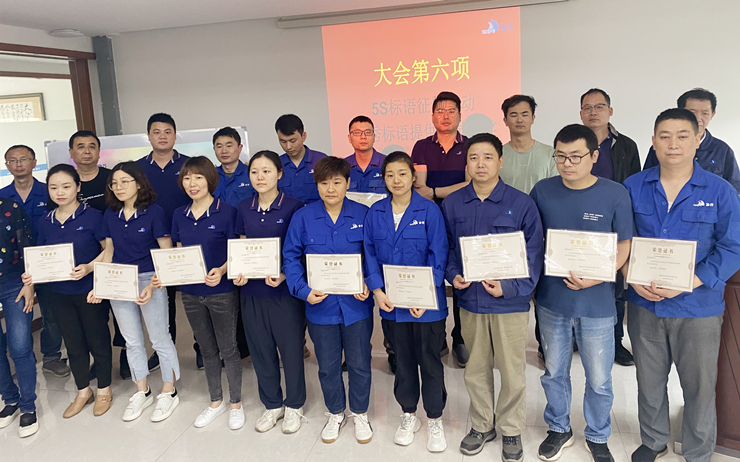 大會第六項:”5S”標(biāo)語征集活動優(yōu)秀標(biāo)語提供人員頒獎并宣讀誓詞。由總干事代表推委會給予獲獎員工頒獎并帶領(lǐng)與會全員宣讀誓詞。