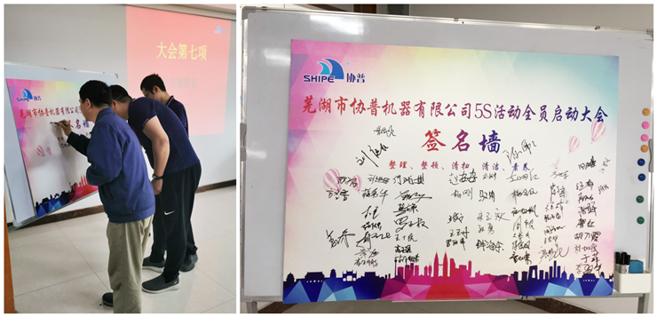 全員宣讀完誓詞后大會進入最后一項:簽名墻簽名。全體協(xié)普成員陸續(xù)上臺落款簽名,表達對公司”5S” 管理改善活動會給予全力落實推進。