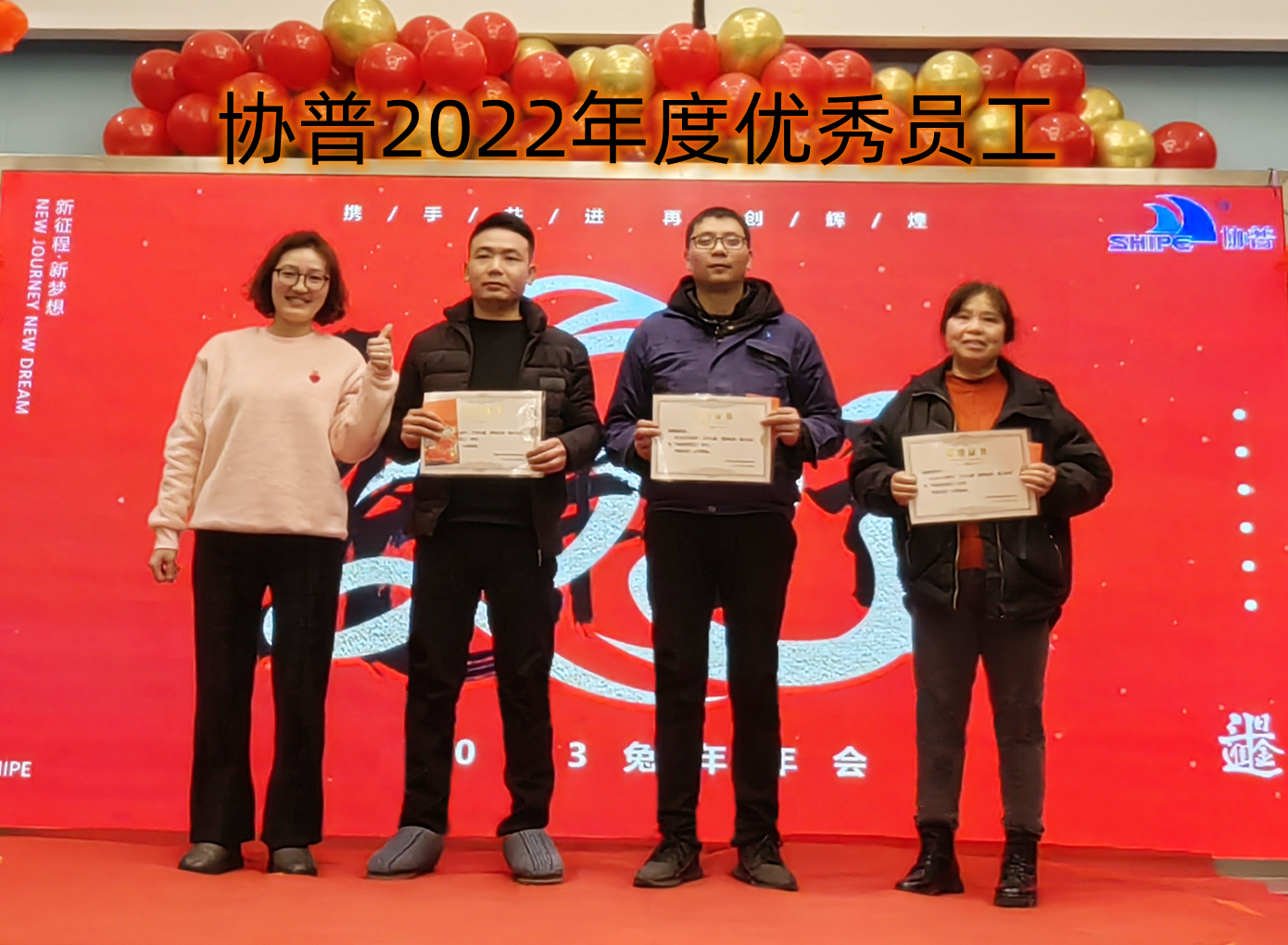 趙總致辭后,公司為2022年度表現(xiàn)優(yōu)異的團(tuán)隊(duì)和個(gè)人進(jìn)行了表彰。人才是公司生存和發(fā)展之本。公司發(fā)展的每一步都離不開每個(gè)協(xié)普人的努力和付出。本年度公司共評(píng)選出三名優(yōu)秀員工——陶?;?、楊剛、徐金鳳,“2022年度突出貢獻(xiàn)獎(jiǎng)”——張傳東、桂佳俊,“2022年度敬業(yè)獎(jiǎng)”——陳阿龍,“年度宣傳小能手”——宋玉秋;“協(xié)普年度出差達(dá)人”——胡金龍,“年度最具成長力員工”——王傳銀,“5S進(jìn)步團(tuán)體”——技術(shù)部、車間鉚焊班,“質(zhì)量進(jìn)步團(tuán)體”——質(zhì)量部,“協(xié)普奉獻(xiàn)獎(jiǎng)”——?jiǎng)⑼ビ瘛?/span>