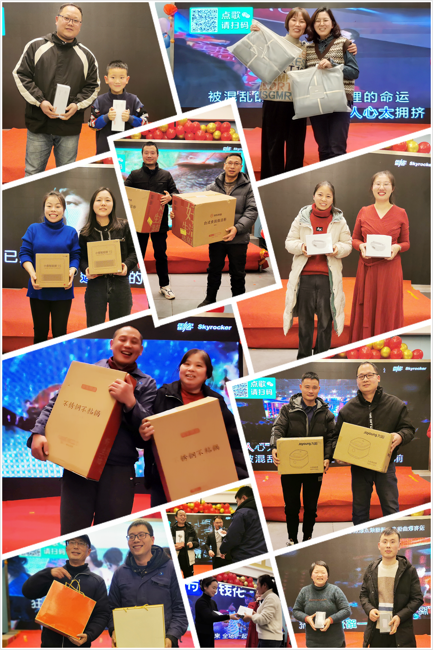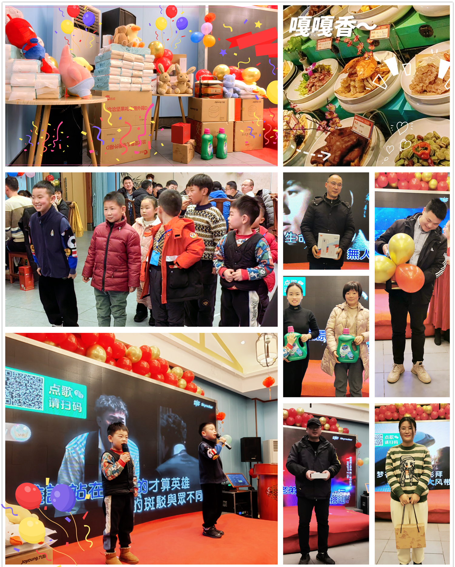 年會(huì)最激動(dòng)人心的莫過于幸運(yùn)大抽獎(jiǎng), 本次年會(huì)抽獎(jiǎng)公司準(zhǔn)備了一批精美的生活電器禮品禮盒,還有暖心的生活家居用品、可愛的布偶娃娃,伴隨著抽獎(jiǎng)和各項(xiàng)小游戲,開始了年會(huì)的晚宴環(huán)節(jié),以此來答謝各位協(xié)普家人一年來的辛勤工作與默默付出。大家聚在一起,舉杯歡飲,共襄盛舉。更有協(xié)普小朋友們的熱情暖場,現(xiàn)場氣氛熱烈,歌唱聲、嬉戲聲、祝福聲、碰杯聲此起彼伏......