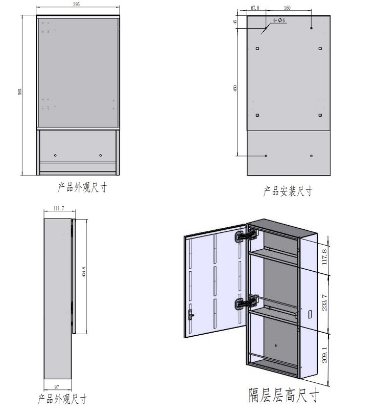 可選材質(zhì):鍍鋅鋼板、鋁合金、不銹鋼; 銀鏡、無(wú)銅鏡、不銹鋼鏡面。